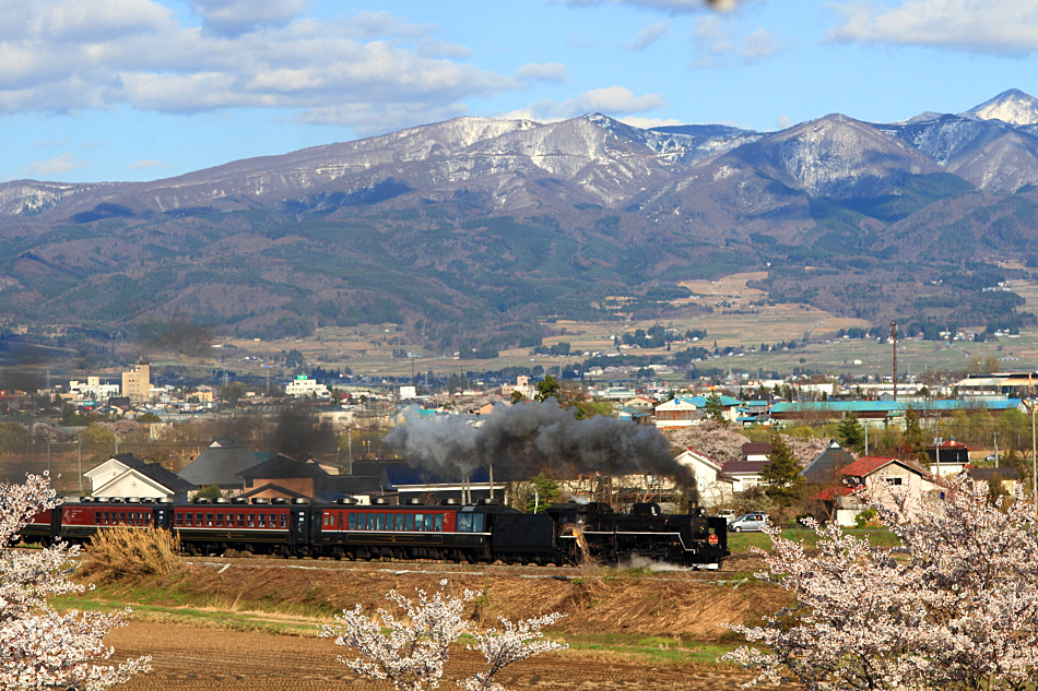 長い冬が終わり桜の季節がやってきた、開花状況は昨年よりは1週遅く気温も低いため花が持ったと思われます。訪問した週は天気も良く福島から新潟に向けて桜もきれいに咲いていた。蒸気機関車も調子がいいようで軽快に走っており、蒸気の煙がきれいであった、しかしこれから気温が上がると少し煙が寂しくなりそうです