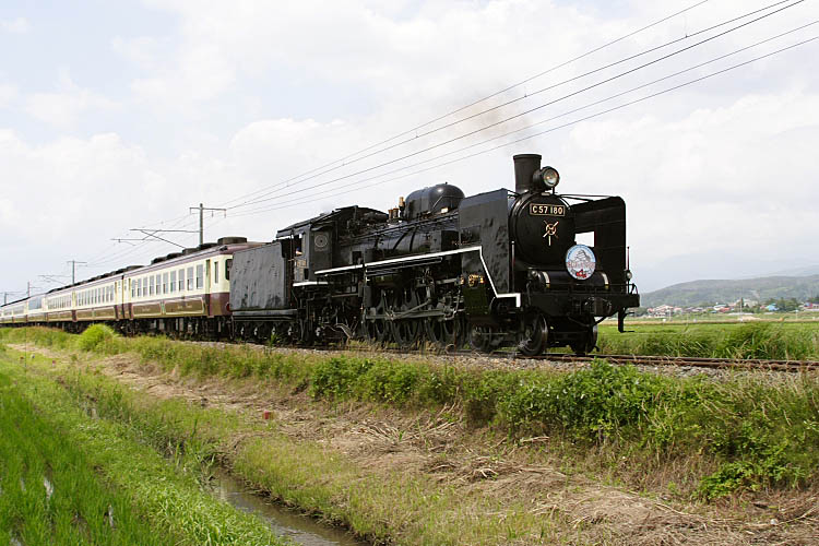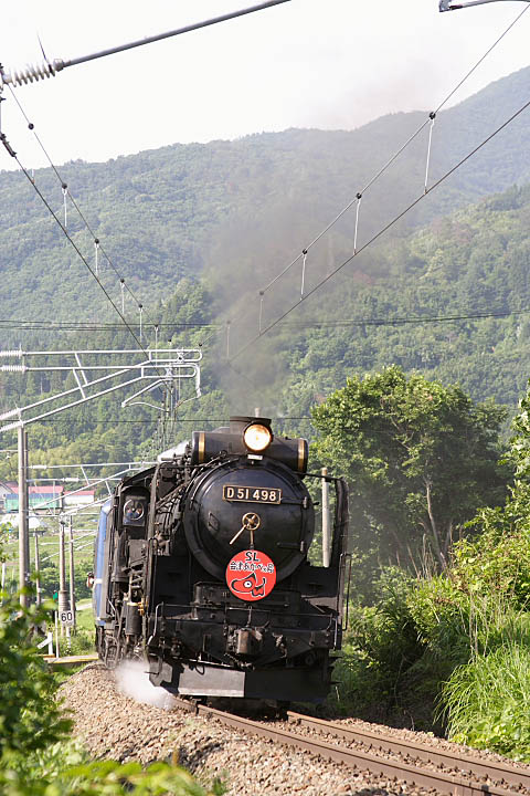 最後は電柱がうるさいのですが、ボディが光ったので一枚。梅雨のしっとり感を撮りたくて出かけましたが、梅雨の晴れ間となり真夏のSLとなりました
