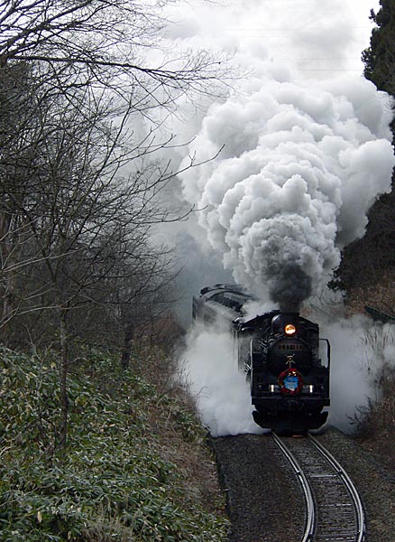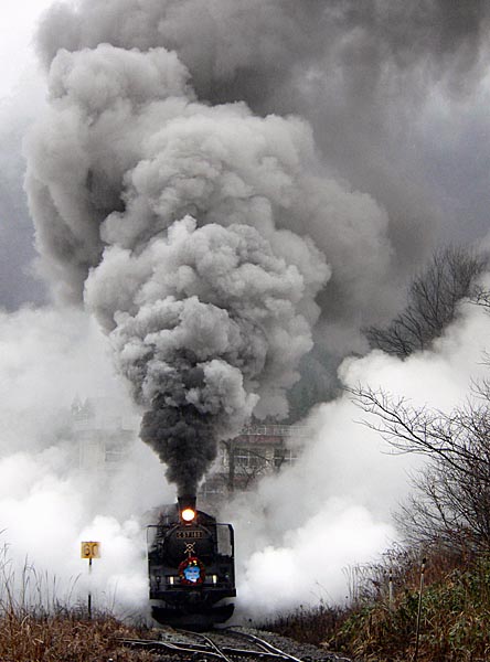 2004年12月23-25日に毎年恒例の「X'mas トレイン」が走りました、雪の中を疾走するSL運転を期待して、スタッドレス装備のレンタカーで走りましたが、ちょっと気温が下がり切らなかったようで、まだら雪となってしまいました。しかし元気いっぱいに走るSLの姿は、明日の新潟を象徴するようでした