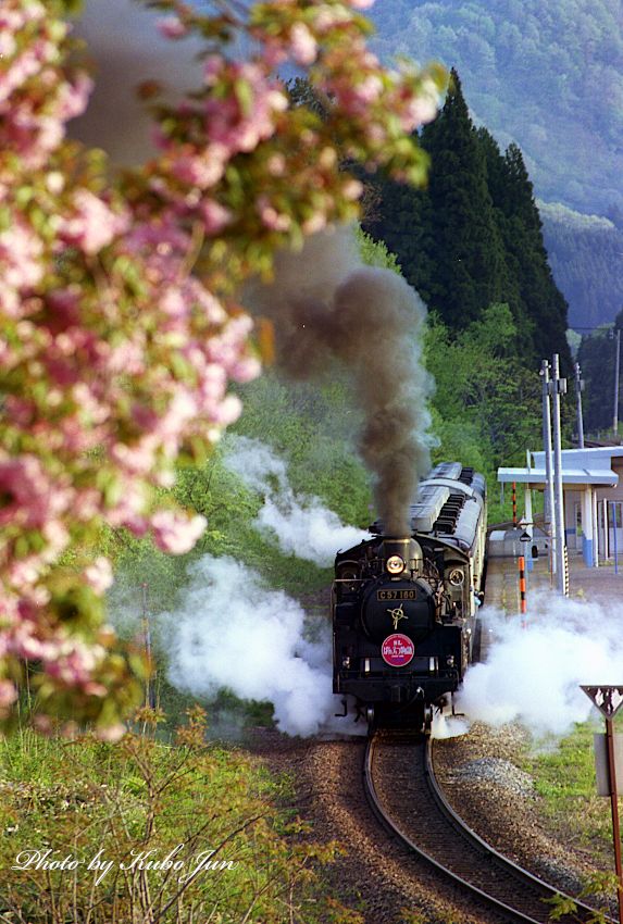 空気がまだ冷たい。ヘッドマークのないC57180が走る