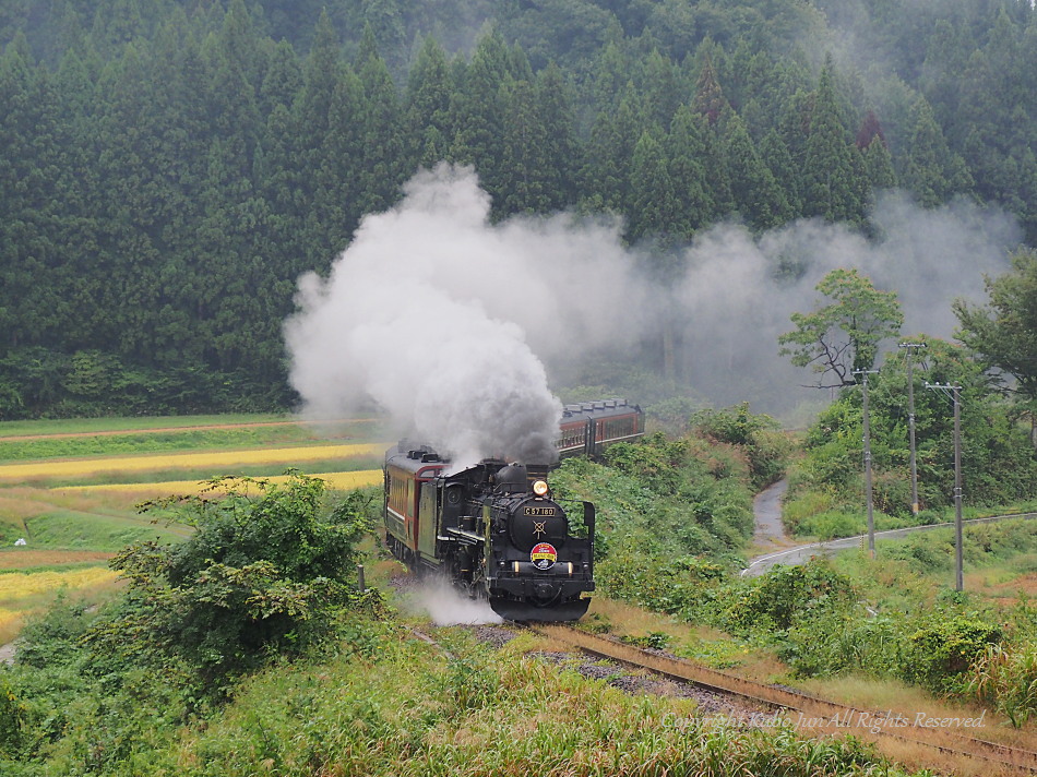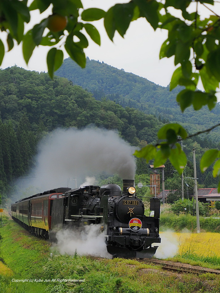最後は川吉のSカーブ。C57180は快調に走り抜けた