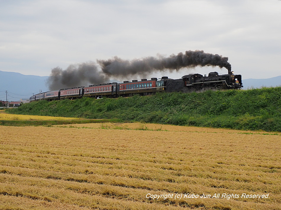 稲刈りは新潟方面はほぼ終わりで、福島はこれからの状況であった。運悪く前線通過の悪天候で、初日は曇り、翌日は朝から雨が降りテンション低い撮影であった。沿線の撮影者も多くなくのんびり撮れた。29日の午後からはカウントダウンの始まったキハ47を撮るべく只見線に移動して大好きな第1橋梁を撮った