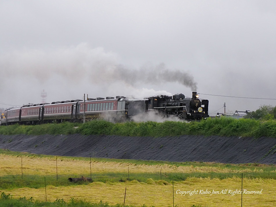台風一過の晴れを期待したが、残念ながら降ったり止んだりの天気。しかもSLが来ると降る