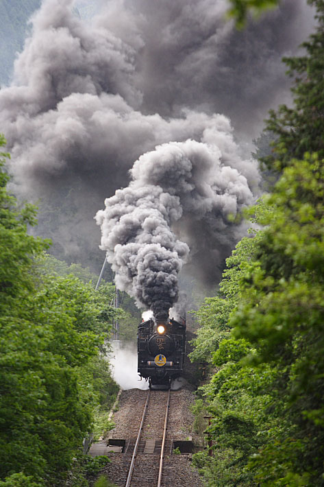 しとしと降っていた雨に、SLが土砂降りを連れてきた。