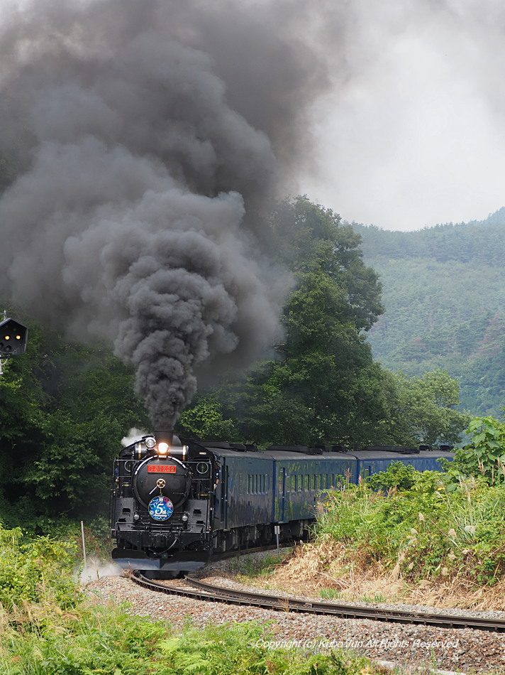 陸中大橋駅を過ぎて、ふと山を見上げると鉄橋の上をSLが走っている