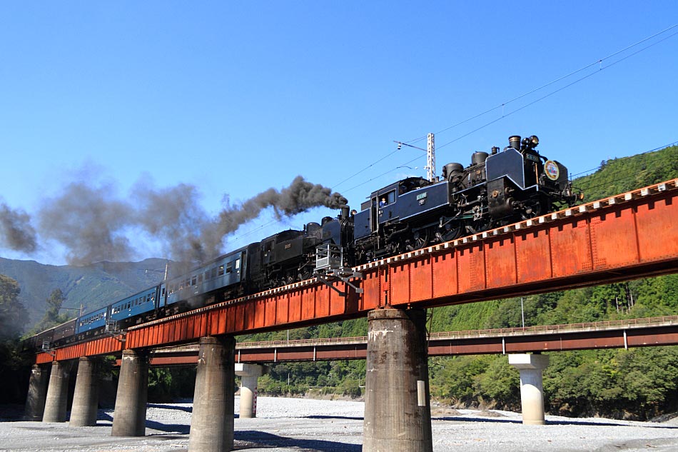SLフェスタが催され、機関車を2台つなげて重連走行をすると発表があったため、出かけることにした。沿線の人出もたくさんで人気をよさを感じた。終点の千頭駅ではこの日の機関車を3台並べて記念写真を撮るイベントが行われ、ものすごい人をかき分け写真を撮った