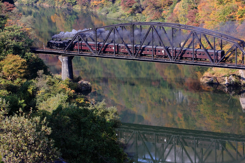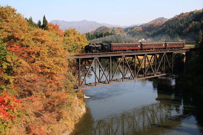 試運転は通常3日間実施されるが、仕事の関係上2日だけとなった。会津川口から先の第7橋梁の紅葉は美しく、チャンスがあればもう一度写真を撮りたいポイントだ