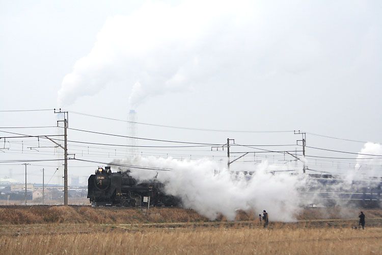 2007年2月 千葉ディスティネーションキャンペーンで内房線(千葉-木更津、木更津-館山)をD51498が走った。試運転を含めて沿線はSLを見る鉄道ファン、更にはそれを上回る一般の見物人、にわかカメラマンが沿線を埋め尽くし、大盛況のなか運転は終わった。報道で知った人の多さに行く気を無くしていたが、浦安からの地の利のよさと、海を入れた写真を一度撮ってみたくなり散歩がてらに出かけました。