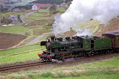 初めての訪問から3年たち、煙突以外はオリジナルに近くなったのと、57号線オーバークロスからの写真が撮りたくて再度出かけた。何度行っても、立野のスイッチバックの勾配はきつすぎで、機関車が壊れないかと危惧していたのもつかの間、2005年に台車が割れて、長期入院となった。第2復活後は緩やかな、肥薩線で余生を送っている