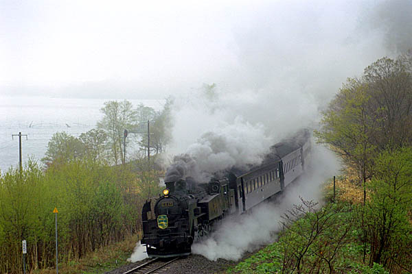 北海道の遅い春、新緑の中を走るC11はとても輝いて見えました