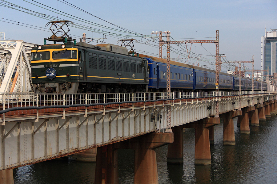 EF81106 牽引の日本海 この日が最後に撮影できる休日、淀川の土手でたくさんの人が見送った